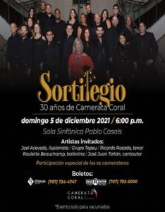 Camerata Coral de Puerto Rico celebrará su 30º aniversario con su concierto “Sortilegio”, que se presentará en la Sala Sinfónica Pablo Casals en el Centro de Bellas Artes de Santurce, el domingo, 5 de diciembre a las 6:00 p.m.