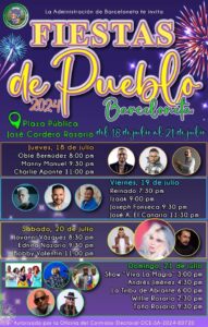 El jueves 18 de julio, se presentan en tarima Obbie Bermúdez, Manny Manuel y Charlie Aponte. El viernes, se llevará a cabo el reinado a las 7:30 de la noche. A las 9 pm inicia la música con Izaak, seguido de Joseph Fonsea y José “El Canario”.