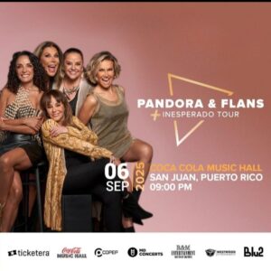 (San Juan, Puerto Rico) El sábado, 6 de septiembre 2025 la cita es en el Coca-Cola Music Hall 8:00 PM – Dos de los grupos más icónicos del pop en español, Pandora y Flans, continuarán conquistando corazones con su exitosa gira conjunta, llevando a los escenarios la esencia de una época dorada de la música latina.