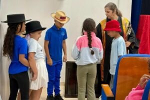 Recientemente, alrededor de 150 niños entre las edades de 5 a 7 años, participantes del Campamento de Verano de Bellas Artes del Municipio, disfrutaron de la narración de Cuentos Ambientales del Mundo y la charla interactiva ¿Dónde está la cucarachita Martina?, ambas ofrecidas por la autora, ilustradora, actriz, dramaturga y promotora de lectura Tere Marichal Lugo, también conocida como “María Chuzema”.