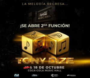 “Celebramos junto a Tony Dize este contundente respaldo de sus fans que han respondido masivamente al regreso de una de las voces más emblemáticas del género urbano. La venta de boletos para el viernes, 17 de octubre se abrió ayer a la media noche y se agotó en menos de dos horas, por lo que hoy sale a la venta la segunda función“, expresó Rocafort quien produce para Lana Productions.