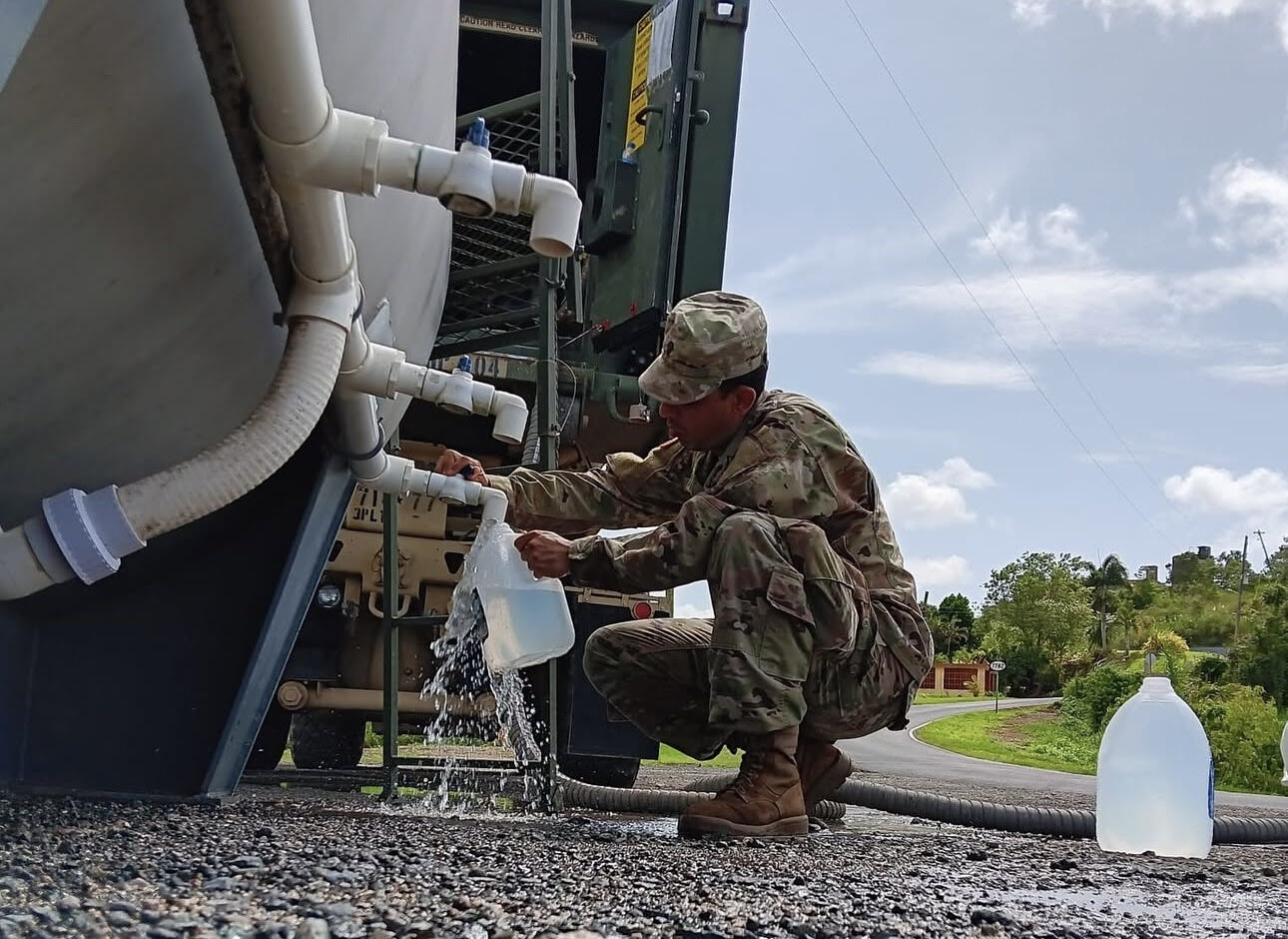 La Guardia Nacional de Puerto Rico exhorta a los ciudadanos a permanecer atentos a los anuncios de la AAA y de los gobiernos municipales para conocer los puntos y horarios de distribución de agua potable.