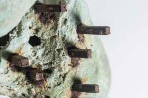 El artista trabaja con hormigón, hierro, acero oxidado, restos industriales, tela, hueso, foam y madera. Su obra se convierte en un objeto de silenciosa rebeldía que difumina la línea entre la escultura, la pintura y lo doméstico. La oxidación del acero, utilizada como pigmento en sus lienzos y esculturas, se erige como una metáfora del estancamiento económico, la corrupción y la falta de mantenimiento de la infraestructura del país.