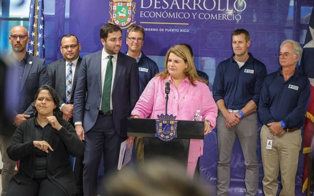 La gobernadora Jenniffer González Colón, junto al secretario del Departamento de Desarrollo Económico y Comercio (DDEC), Sebastián Negrón Reichard realizaron hoy dos grandes anuncios
