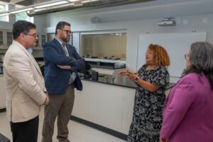 Por su parte, la decana del Colegio de Ciencias, Dra. Alma L. Santiago Cortés explicó: “El nuevo edificio alberga modernos laboratorios de vanguardia para los cursos de biología y química, dotados con tecnología de última generación. Esta inversión millonaria en infraestructura enriquecerá la experiencia práctica y el desarrollo académico de los estudiantes de los programas de Bachillerato en: Biología, Biotecnología, Ciencias Ambientales, Química, Ciencias Biomédicas, Tecnología Médica, Tecnología Cardiovascular No-Invasiva, Enfermería y Ciencia de Datos Aplicada.”