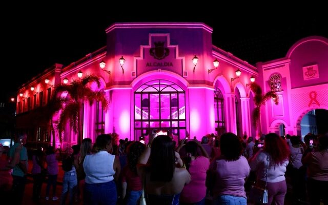 Fajardo ilumina su Alcaldía de rosa en solidaridad con pacientes de cáncer de mama