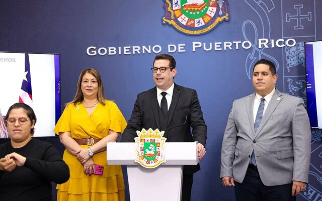 El secretario de la Gobernación, Francisco Domenech junto a la directora ejecutiva de la Administración de Asuntos Federales de Puerto Rico (PRFAA), Gabriella Boffelli,