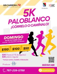 El Centro Paloblanco está ubicado en la PR 955 km 4.8 enPalmer Río Grande. Este es un evento tipo ‘córrelo o camínalo’, de manera que todos pueden asistir al mismo. Habrá premios enmetálico para los ganadores. Para participar, los interesadospueden comunicarse al 787-239-5789 o registrarse en la páginade micarrerapr.com y pagar la entrada de $35.00 por persona, que incluye camiseta, medalla e hidratación durante el evento. El 5k sale desde el estacionamiento de la Escuela Intermedia Carmen Feliciano en la misma Carr. 955.