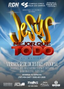 El taller y ministerio artístico “Ministerio Luz Escénica”, compuesto por más de 30 talentosos jóvenes y adultos, presentará el nuevo musical “Jesús, Mejor que Todo” el viernes, 12 de diciembre de 2025, en la Iglesia del Nazareno Yahvé Shalom, ubicada en el barrio Dominguito, de Arecibo.