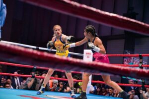 In the main event, a flyweight world title eliminator, former unified world champion Gabriela Celeste Alaniz (18-2, 7 KOs) of Argentina dominated Colombia’s Laura Wollemann (11-2, 3 KOs) over ten rounds. The judges’ scorecards read 98-91 (twice) and 99-90.
