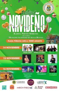 La alcaldesa de Aguas Buenas, Karina Nieves Serrano, encenderá oficialmente la época más esperada del año con el Festival Navideño 2025, que se celebrará desde el viernes 14 al domingo 16 de noviembre en la Plaza Pública Luis A. Ferré Aguayo de ese municipio. Serán tres días de música, tradición y ambiente familiar para el disfrute de todos los aguasbonenses.