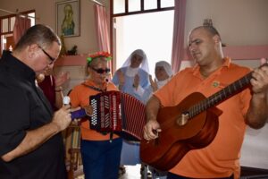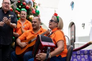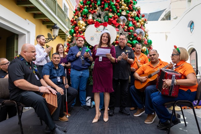 La jornada culminó con la tercera visita guiada inclusiva a La Fortaleza, donde la administradora de la ARV, doctora Rosa H. Lugo Cabán acompañó junto a su equipo de trabajo a personas con diversidad funcional visual y de autismo para recorrer en la mañana del miércoles, los salones oficiales del segundo piso de la Mansión Ejecutiva, viviendo una experiencia de acceso, pertenencia y reconocimiento en uno de los espacios más emblemáticos del quehacer gubernamental. Al concluir el recorrido, músicos y cantantes del Programa de Industria de Ciegos de la ARV ofrecieron interpretaciones musicales desde la entrada a La Fortaleza que deleitaron al personal y visitantes, destacando el talento y la disciplina artística de esta población. Esta jornada continuó con la visita al nacimiento vicentino en la Casa de las Siervas de María, donde también se llevó una emotiva cantata a los pacientes de la casa de salud, compartiendo música, esperanza y cercanía.