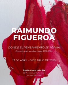 Con una amplia trayectoria y una presencia sostenida en el circuito internacional, Raimundo Figueroa presenta Donde el pensamiento se forma, una exposición de pinturas y obras sobre papel que inaugura este viernes, 17 de abril, en Popular Center, en Hato Rey. La muestra reúne obras de 1992, 1995, 2006 y 2026, estableciendo un diálogo entre distintos momentos de su producción. La recepción de apertura se celebrará ese mismo día a las 5:30 p.m.